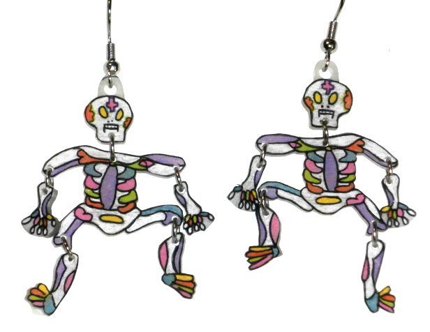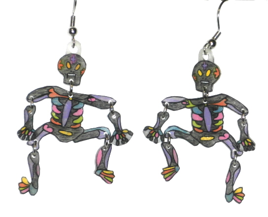 "Dancing" Skeleton Earings-Black/Multicolor |